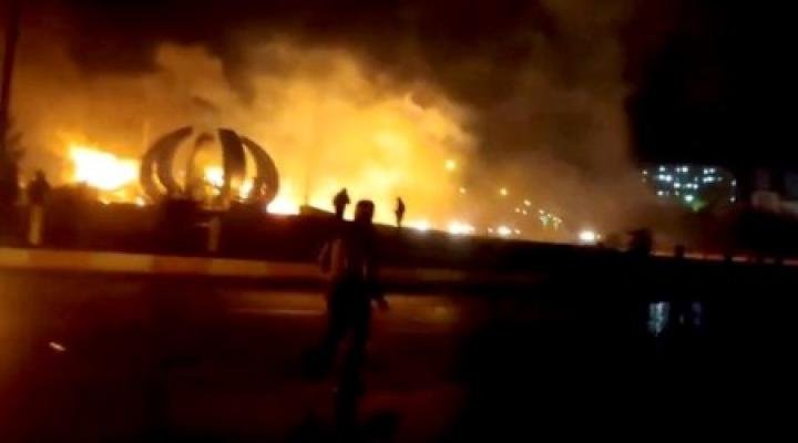 Images posted on social media show part of the structure in the city of Khomein being set ablaze.