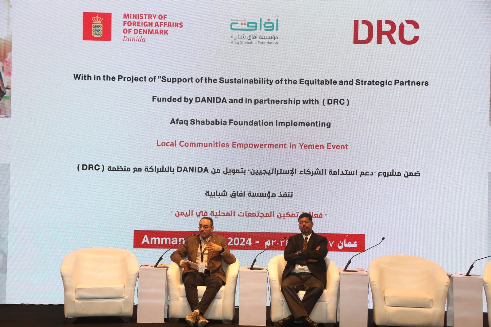 The Jordanian capital, Amman, witnessed a discussion event on “Empowering Local Communities in Yemen” organized by the Danish Refugee Council (DRC) and Afaq Shababia Foundation (ASF) with the support of the Danish Ministry of Foreign Affairs (DANIDA) and participation of Aden Chamber of Commerce and Industry (ADENCCI).