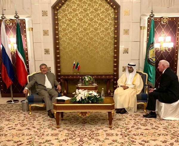 The Secretary-General of the Gulf Cooperation Council (GCC) for Arab States Dr. Naif Falah Mubarak Al-Hajraf, met here today with the visiting President Rustam Minnikhanov of the Republic of Tatarstan (head of the Strategic Vision Group), on the sidelines of the meeting of the in the meeting of the Group of Strategic Vision (GSV) “Russia – Islamic World”.