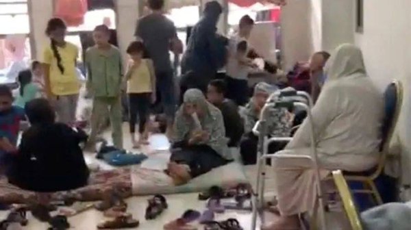 Video posted by the Red Crescent shows shattered glass on the ground as health workers carried children and medics tended to a woman with a leg injury.