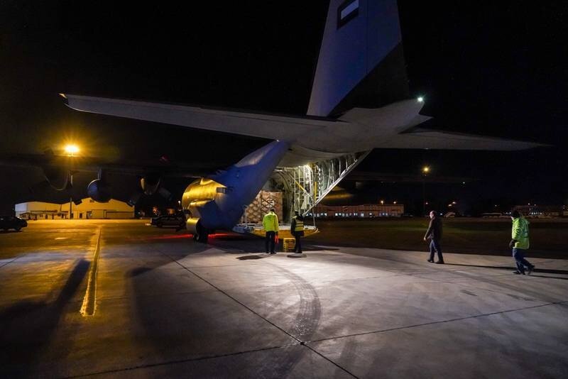 The first cargo plane took off on Wednesday morning carrying 25 tonnes of aid, including food items, medical equipment and tents. The two military transport aircraft landed on Wednesday evening.