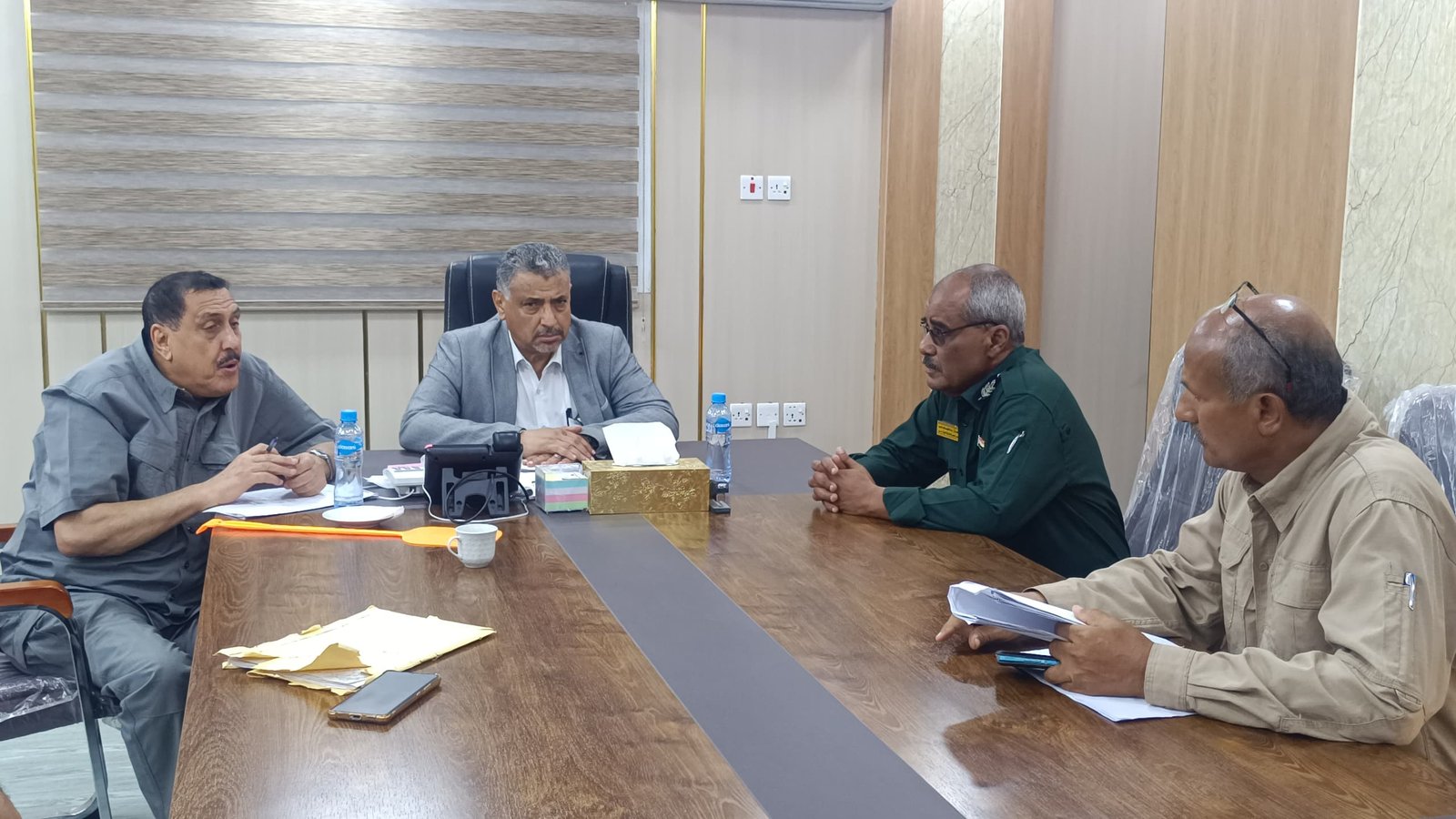 During his visit to Aden Security Department, the Deputy Governor of Aden Governorate, Secretary-General of the Local Council, Badr Mu’awin Saeed, was briefed by Major General Mutahhar Naji Al-Shuaibi, Director-General of Aden Security, on the progress of the security operation in the governorate and the security preparations to protect the examination centers for secondary school certificates. He emphasized the readiness of the Aden Governorate leadership, represented by His Excellency the Minister of State and Governor of the Governorate, Mr. Ahmed Hamed Lamlas, to provide all necessary support to enhance the performance of the security services, particularly with regard to providing security protection for the examination process, ensuring its desired success. He praised the efforts made by the Director of the Security Department, Major General Mutahhar Al-Shuaibi, in improving security performance and raising security readiness to confront any emergency, God forbid. This will achieve security, stability, and public tranquility in the capital, Aden. The Deputy Governor of Aden Governorate and Secretary-General of the Local Council inspected the progress of work at the Joint Security Operations Room and was briefed by Brigadier General Abdulhakim Salem Batisir, Director of Joint Security Operations, on the level of performance and updates made to the Joint Security Operations Room, the system of shifts and shifts for officers from all security agencies, and the procedures followed for recording reports, archiving, and computer documentation.
