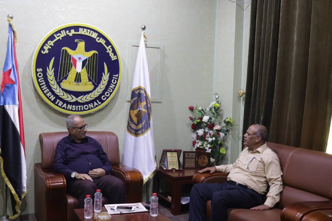 The Deputy Secretary-General of the Presidency of the Southern Transitional Council, Mr. Fadl Mohammad Al-Jaadi, met on Monday, at the headquarter of the General Secretariat in Aden the capital, with Dr. Mohammad Jaafar bin Al-Sheikh Abu Bakr, Head of the Executive Authority of the Local Leadership of the Southern Transitional Council in Hadramout Governorate.