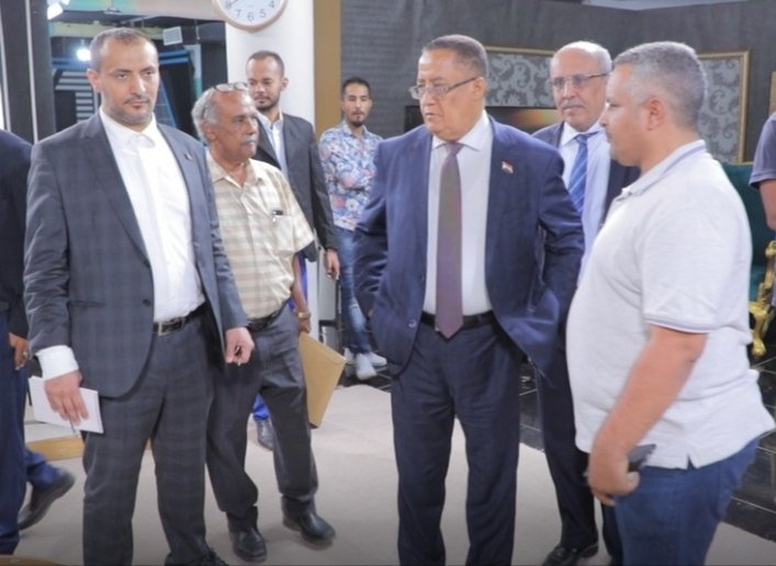 On the visit, that included Eng. Nizar Haitham, member of the Council’s Presidency, Head of the Council’s executive authority in Aden the capital, and Mr. Anis al-Sharafi, member of the Negotiations Affairs Unit of the Council, and Dr. Abdullah al-Haw, head of Media Department at the General Secretariat of the Council’s Presidency, Dr. Al-Khobaji and Al-Kathiri and their companions toured the various departments of the radio and television unit, in which they got acquainted on the progress of work in the various departments, the nature of the work of the staff of each department, as well as the existing electronic equipment and technologies and their role in radio and television broadcasting.