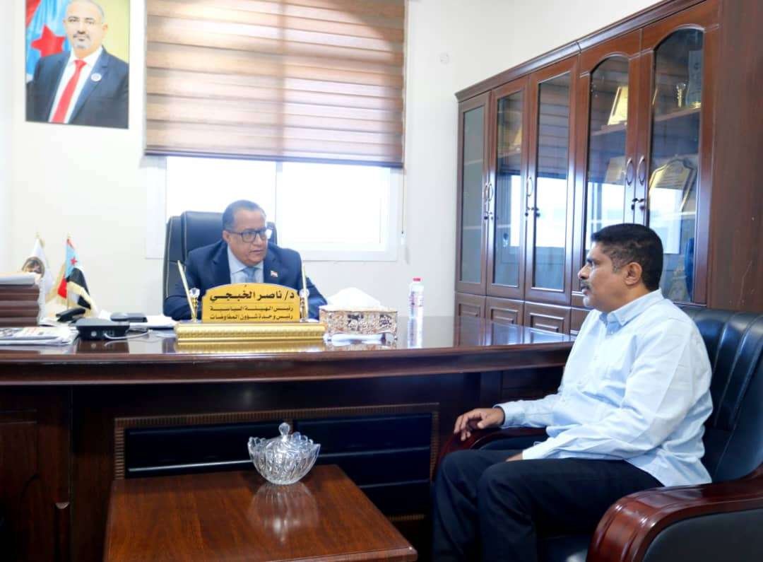 Dr. Nasser Al-Khobaji, Head of the Political Body and Head of the Negotiations Affairs Unit in the Southern Transitional Council, met on Sunday, in the capital, Aden, with Brigadier Saeed Al-Mohammadi, Head of the Executive Body of the Local Leadership of the Transitional Council in Hadramaut Governorate.