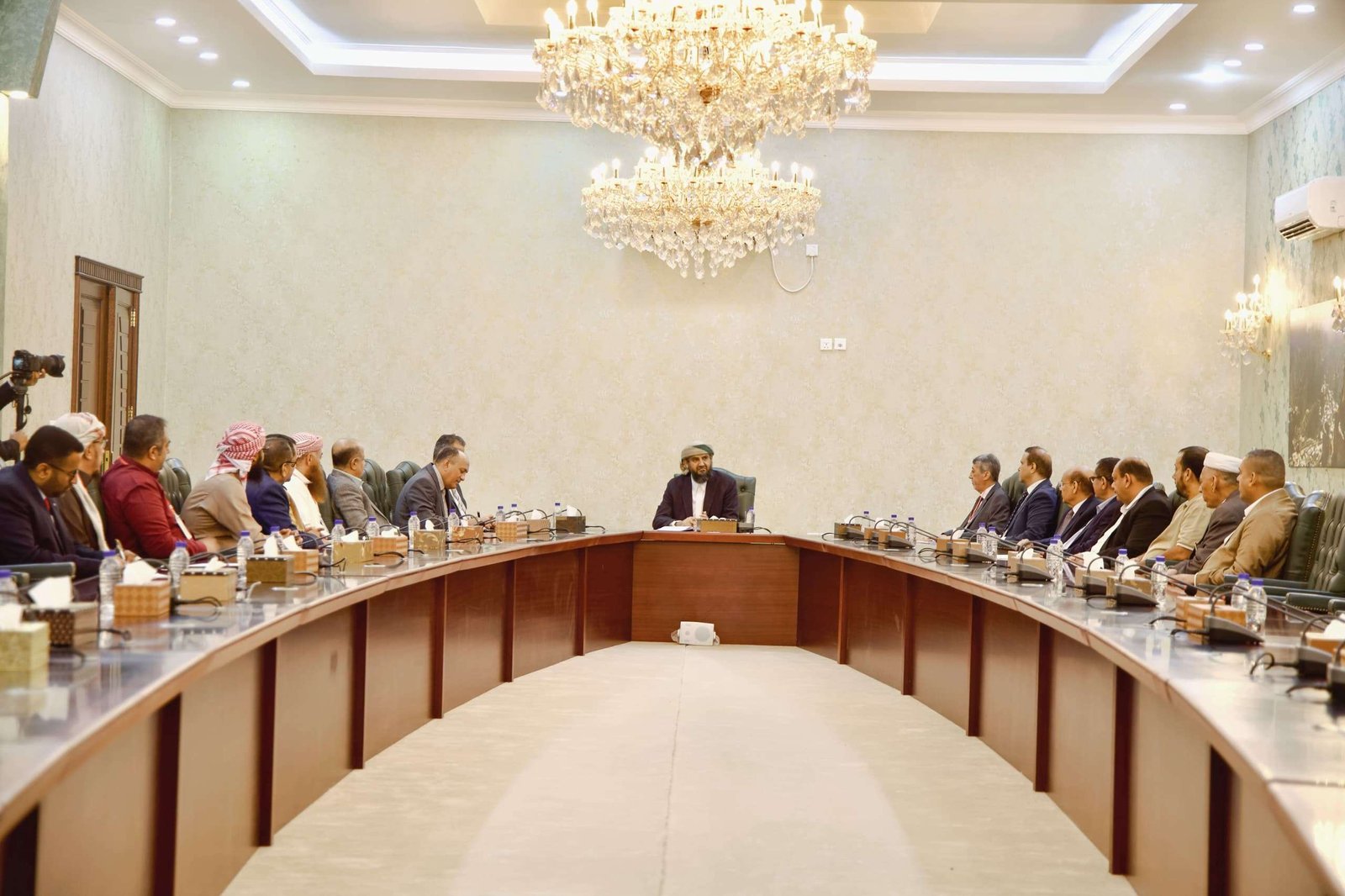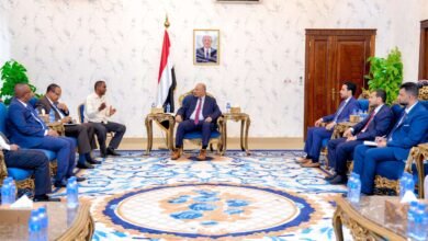 These remarks came during an expanded meeting he held today, Thursday, at the Presidential Palace in the capital, Aden, in the presence of the Minister of State, the Governor of Aden, Mr. Ahmed Hamed Lamlas, the Deputy Minister of Industry and Trade, Mr. Salem Al-Wali, the Head of the Tax Authority, Dr. Jamal Saroor, the Head of the General Authority for Standards and Metrology, Eng. Hadid Al-Maas, and the Head of the Aden Chamber of Industry and Commerce, Mr. Abubakar Ba’abad, alongside a number of financiers, businessmen, and representatives of the private sector.