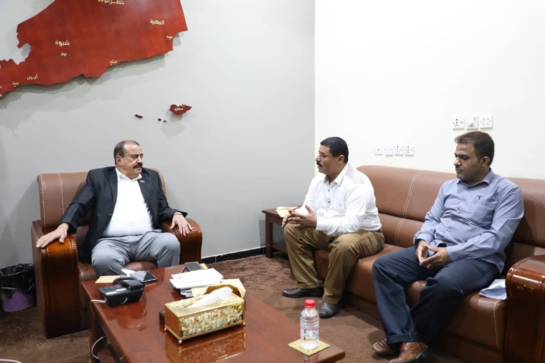 Major General Ahmed Saeed bin Brik, Chairman of the National Assembly of the Southern Transitional Council, met in his office at the headquarters of the Assembly with Mr. Mohammad Qaid Al-Shaeri, Executive Director of the Fund for the Care and Rehabilitation of the Disabled in the capital, Aden.