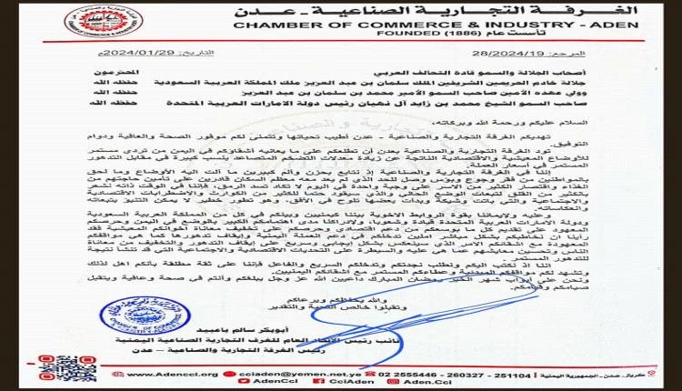 Chamber of Commerce – Aden to leaders of Saudi Arabia and UAE: Most of people are no longer able to afford their food needs