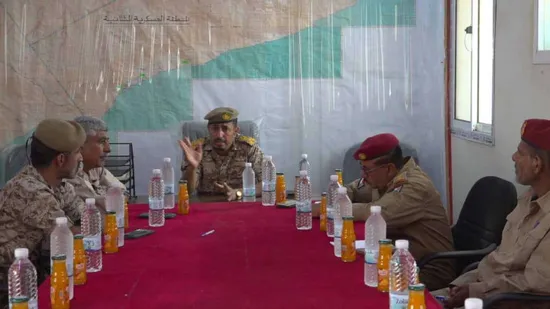 Brigadier General Mukhtar Al-Nubi, Commander of the Abyan Combat Axis, Commander of the Fifth Support and Reinforcement Brigade, met on Tuesday, with the commanders of the support and reinforcement brigades in the axis, in the presence of the axis’s chief of staff, Brigadier General Mohammed Mansour Al-Saadi.