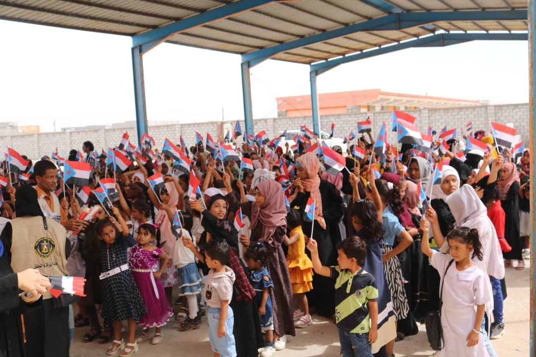 The event, which was held at Amran School in Al-Buraiqah district, included a number of performance, entertainment and chanting presentations for children, in which Ms. Ishtiaq Saad, along with Imtithal Ibrahim, Head of Women and Child administration in the Transitional Council Executive in the capital, Aden, distributed a number of winter clothes and gifts to all students in Amran School.