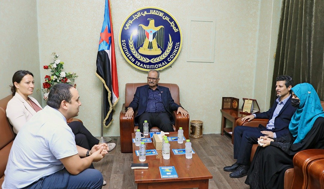 The Deputy Secretary-General of the General Secretariat of the Presidency of the Southern Transitional Council (STC), Mr. Fadl Mohammed Al-Jaadi, received on Sunday, a delegation from the Finnish CMI – Martti Ahtisaari Peace Foundation, represented by Mr. Maruan El-Krekshi, Head of Middle East and North Africa, and Ms. Silvia Thompson, the Senior Manager.