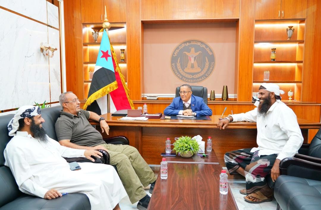 The meeting was attended by Brigadier General Kamal Hamshari, Director of the Office of the President of the Transitional Council, and Brigadier Mohsen Al-Wali, Commander-in-Chief of the Backup and Support Brigades, in which Dr. Al-Khobaji listened from Colonel Al-Khazour to an integrated explanation about the general conditions in Mayon Island, and the suffering of the citizens there as a result of the deteriorating economic conditions.