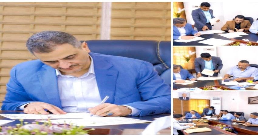 The projects, whose contracts were signed in the presence of the Director General of the Local Corporation for Water and Sanitation, Eng. Mohammed Bakhobeira, and Advisor to the Governor of Aden for Water and Electricity Affairs, Eng. Mohammed Obaid Talib, aim to develop and improve water production sources in the fields, modernize the transmission distribution networks, and rehabilitate sewage networks and treatment plants.