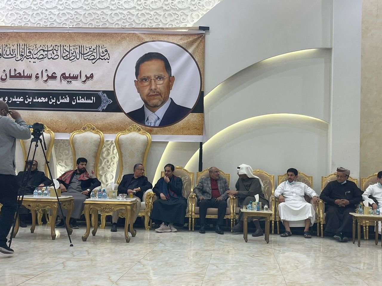 The member of the Presidency of the Southern Transitional Council, head of the Council’s Negotiations Affairs Unit, Dr. Nasser Al-Khubaji, along with the negotiating delegation, offered condolences on the death of Sultan Fadhl Mohammed bin Aidarous Al-Afifi, this came during a visit they paid to the funeral tent for the deceased, which was set up by Yafea tribe in the Saudi capital, Riyadh.