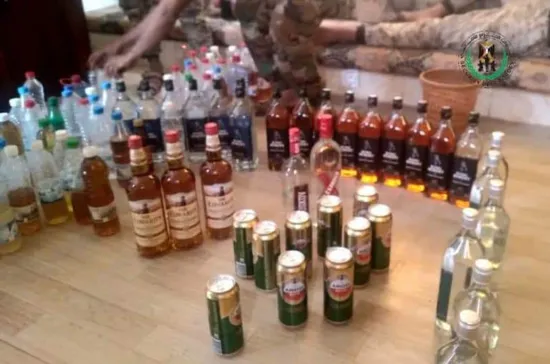 The process of destroying the seized quantity of alcohol, which varied between foreign-made bottles and cans, was under the supervision of a committee of competent authorities.