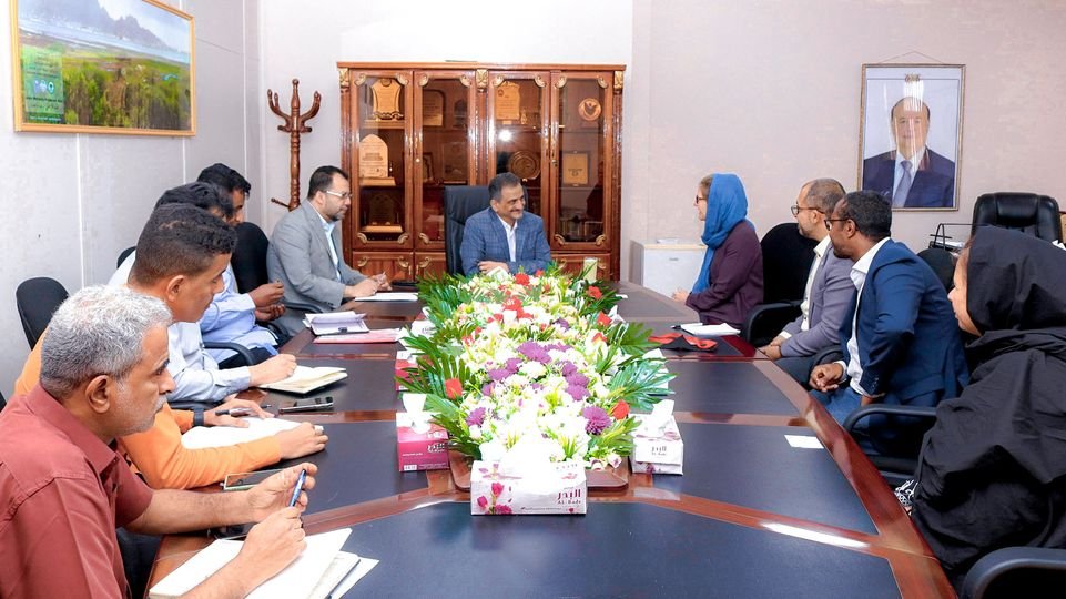 The meeting was attended by Abu Bakr Ba’Obaid, President of the Chamber of Commerce and Industry in Aden, and Bahaa Al-Salami, Assistant Head of Mission and Political Adviser, and Eng. Mohammed Obaid, and Fahd Al-Khulaifi from the Governor’s Advisory Team for Organizational Affairs