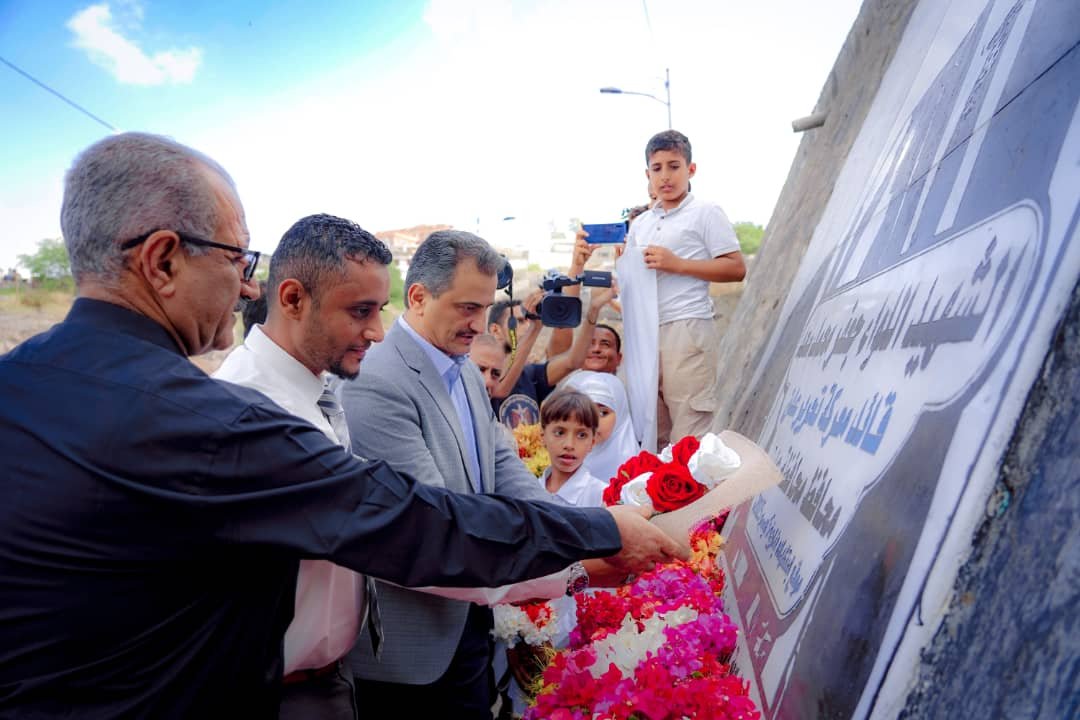 The Secretary-General of the Presidency of the Southern Transitional Council, the Governor of Aden the capital, Mr. Ahmed Hamed Lamlas, and Mr. Fadl Mohammad Al-Jaadi, the Assistant Secretary-General, laid a wreath on Sunday, in front of the memorial plaque of the martyrdom site of Major General Jaafar Mohammad Saad, the former governor of the capital Aden, on fifth anniversary of his martyrdom.