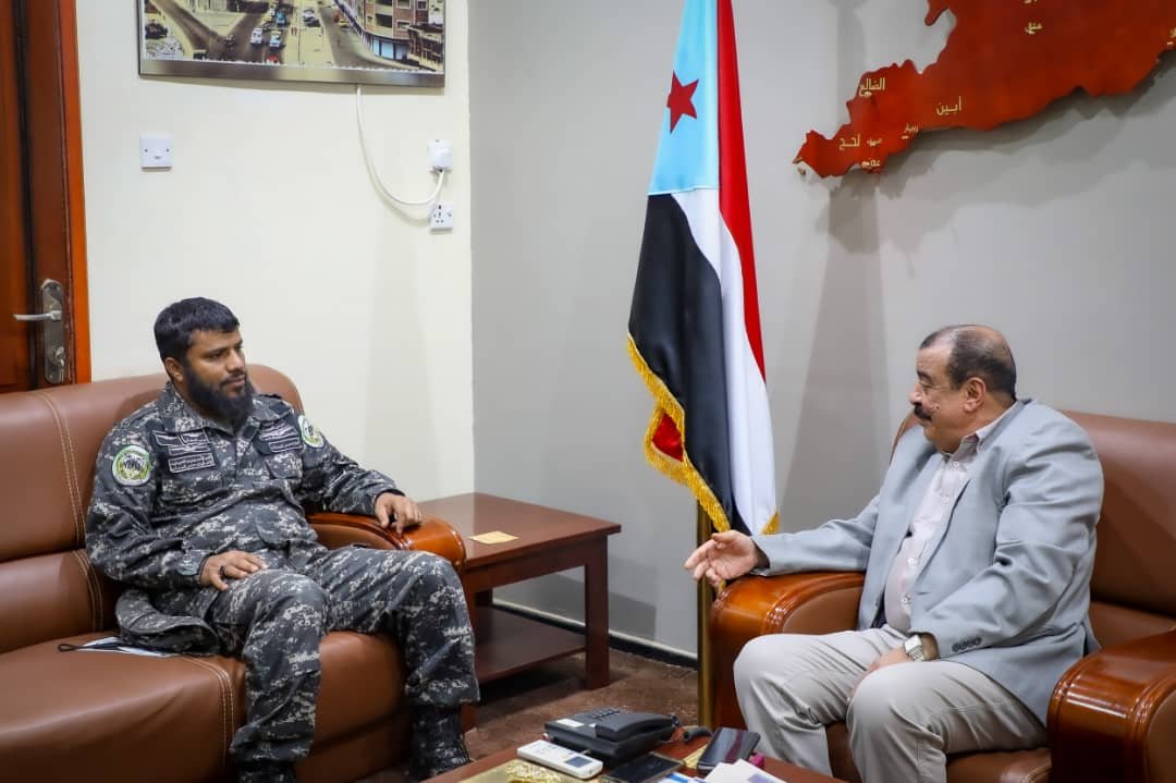 The Chairman of the National Assembly of the Southern Transitional Council, Major General Ahmed Saeed bin Brik, discussed on Monday, with Brigadier Ahmed Mahdi bin Afif, Commander of the Facilities Protection Brigade in the capital, Aden, a number of issues related to the protection of facilities and how to enhance the level of performance, and the distinguished role that these units play in protecting all institutions in the capital, Aden.