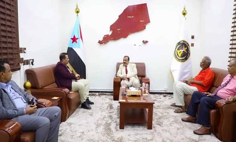 Major General Ahmed Saeed bin Brik, Chairman of the National Assembly of the Southern Transitional Council, met on Sunday, with Mr. Sami Saleh Al-Saidi, Executive Director General of the Yemeni Economic Corporation.