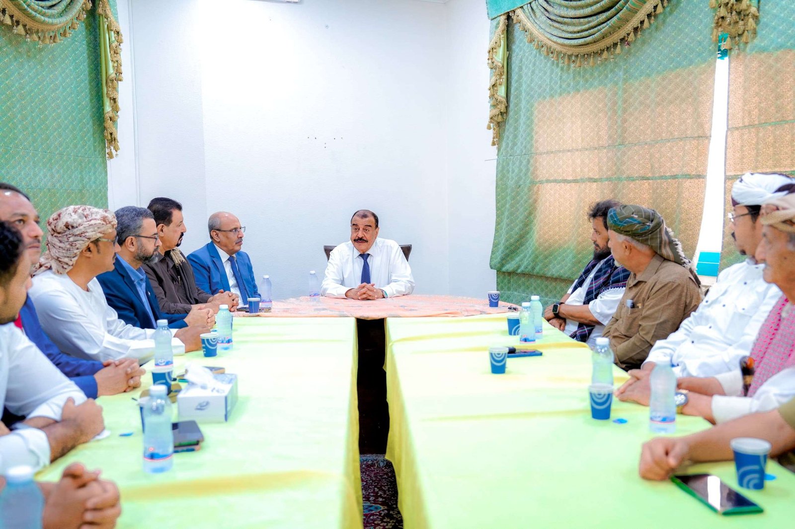 At the beginning of the meeting, Major General Bin Brik welcomed the sheikhs of the Yafi’i Hadramaut tribes, explaining to them the steps planned to unify the voice of the people of Hadramaut and transform the Hadramaut Inclusive Conference into a political platform.