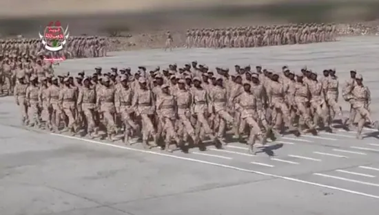 The Southern Giants Forces organized a magnificent military parade, on Wednesday, for graduates of the fifty-fifth batch of the military training and qualification course, which is dedicated to raising the skills of its members.