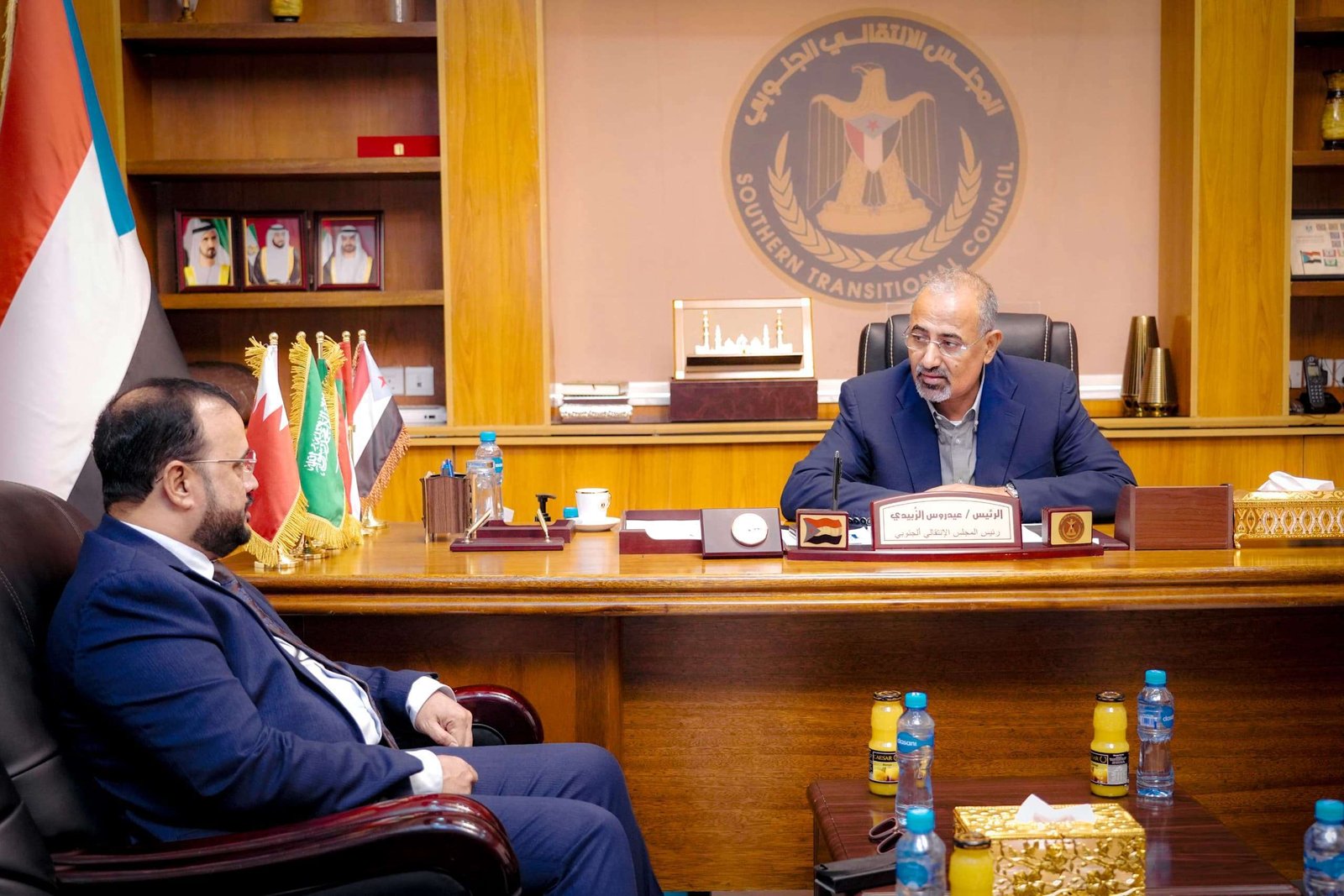 President Aidarous Qassem Al-Zoubaidi, President of the Southern Transitional Council (STC) and Vice-Chairman of the Presidential Leadership Council (PLC), met today, Thursday, with Eng. Salem Al-Harizi, Minister of Public Works and Highways.