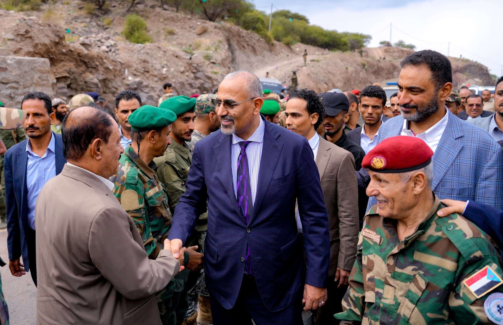 Upon his arrival in Al Dhale’, the President of STC was received by the Governor of the Governorate, Major General Ali Muqbil Saleh; Sheikh Abdulaziz Al-Jafri, member of the Presidency of the Southern Transitional Council and Head of the Presidential Oversight and Guidance Team; Ahmed Al-Rubaizi, Vice President of the STC Council of Advisors; Brigadier General Abdullah Mahdi Saeed, Chairman of the Executive Authority of the Southern Transitional Council in Al Dhale’ and Head of Joint Operations in the Governorate; and a number of political, military, and security leaders in the Governorate.