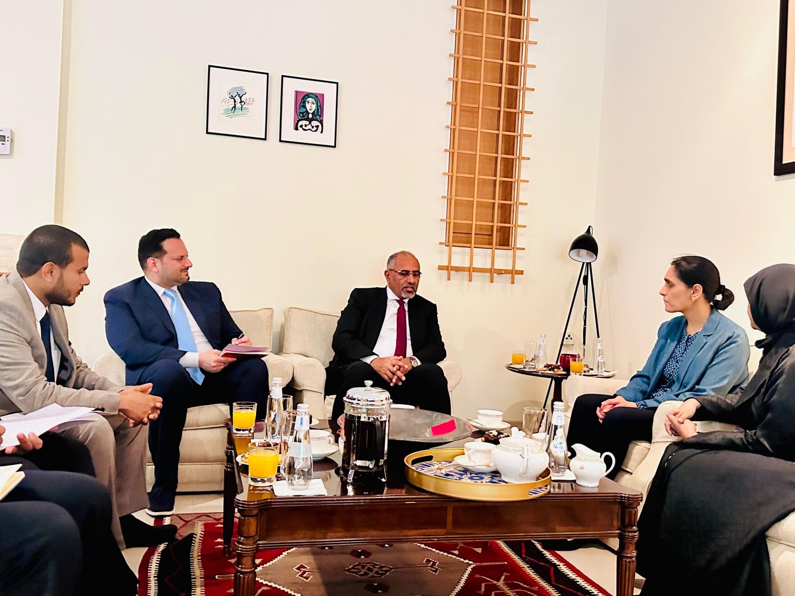 President Aidarous Qassem Al-Zubaidi, President of the Southern Transitional Council (STC) and Vice Chairman of the Presidential Leadership Council (PLC), received on Thursday evening H.E. Abda Sharif, the UK Ambassador to Yemen.