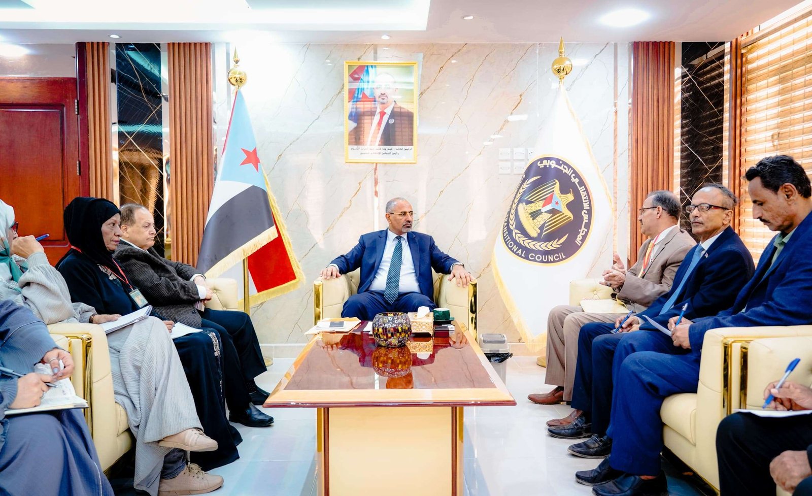 President Aidarous Qassem Al-Zubaidi, President of the Southern Transitional Council (STC) and Vice Chairman of the Presidential Leadership Council (PLC), met today, Sunday, with the Southern National Dialogue Team (SNDT), headed by its Deputy Head, Dr. Saleh Hussein Ahmed Al-Faradhi.