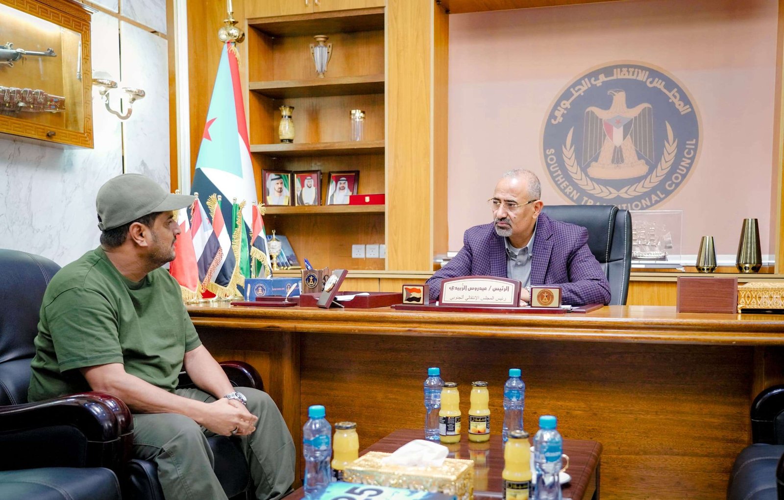 President Aidarous Qassem Al-Zubaidi, President of the Southern Transitional Council (STC) and Vice Chairman of the Presidential Leadership Council (PLC), reviewed the security situation in Abyan Governorate during a meeting today, Saturday, with the Director of Security of the Governorate, Brigadier General Ali Naser Bouzaid; known as “Abu Misha’al Al-Kazmi.”