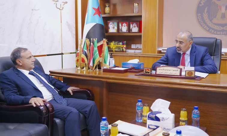 President Aidarous Qassem Al-Zubaidi, the president of the Southern Transitional Council (STC), deputy chairman of the Presidential Leadership Council, on Wednesday, met at his office, in Aden the capital, with Dr. Al-Khadr Lasuar, Chancellor of the University of Aden.