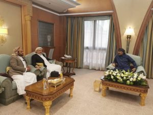 The President of the Southern Transitional Council (STC), Deputy Chairman of the Presidential Leadership Council, President Aidarous Qassem Al-Zubaidi, on Saturday received at his residence in the Saudi capital, Riyadh, a delegation of sheikhs and dignitaries from Marib governorate, which included Sheikh Saba Sinan Abu Lahoum, Sheikh Abdullah Rubeish bin Ka’alan, Sheikh Amer Naji Zuba’, Sheikh Mansour Qaoush, Mohammed Rubeish, and Mohsen bin Talib, Yahya Ahmed Wahas, and Ahmed Al-Ansi.