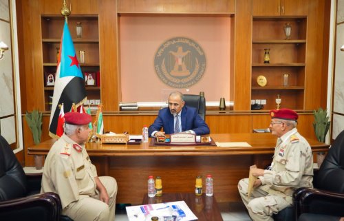 During the meeting with the leadership of the Military College, represented by Brigadier General Abdul-Karim Al-Zumahi and Brigadier General Mohammed Ben Mohammed, director of Qualifying and Training Department, at the Ministry of Defense, the president Al-Zubaidi was briefed on conditions of the Military College, and ongoing efforts and arrangements to resume the educational process, to contribute to provide army units with qualified cadres.