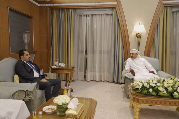 The President of the Southern Transitional Council (STC), Deputy Chairman of the Presidential Leadership Council, President Aidarous Qassem Al-Zubaidi, on Sunday in the Saudi capital, Riyadh, Minister of Youth and Sports in the power-sharing government, Naif Saleh Al-Bakri.