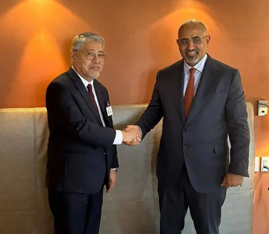 President Aidarous Qassem Al-Zubaidi, President of the Southern Transitional Council (STC) and Vice-Chairman of the Presidential Leadership Council (PLC), met on Tuesday evening at his residence in New York City, USA, with the Secretary for Foreign Affairs of the Philippines, Mr. Enrique Manalo.