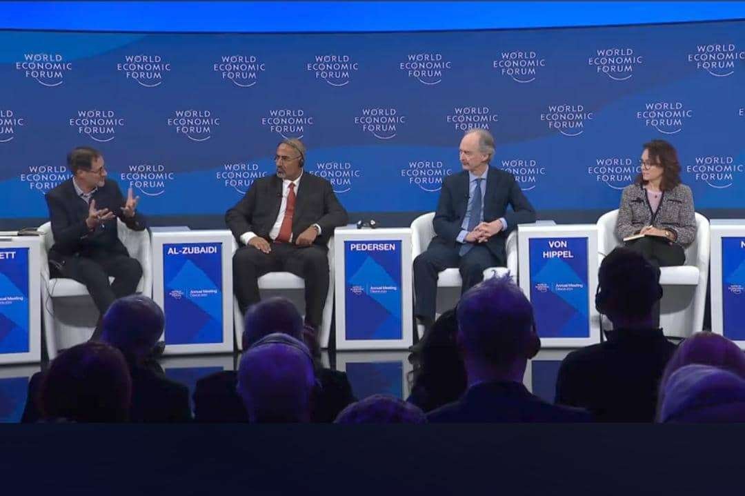 President Aidarous Qassem Al-Zubaidi, President of the Southern Transitional Council (STC) and Vice Chairman of the Presidential Leadership Council (PLC), participated today, Wednesday, in the discussion panel held entitled “The Middle East Conflict: What is the End Game?” as part of the discussion activities at the World Economic Forum (WEF), which is hosted in Davos, Switzerland.