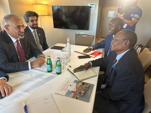 The meeting reviewed bilateral relations and the ways of enhancing and developing them, and in this context, President Al-Zubaidi conveyed his greetings to President Salva Kiir, expressing his aspiration to build strong relations between our country and South Sudan through proper channels of coordination and communication.