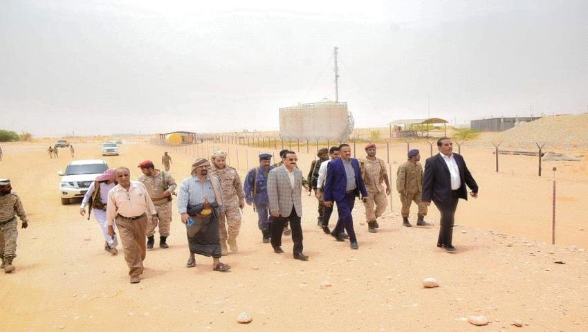 Shabwa Governor Awad bin Al-Wazir Al-Awlaki visited the Ayyad oil field west of Jardan District to inspect the progress of the appeal work in the facilities, and to check on their basic needs.