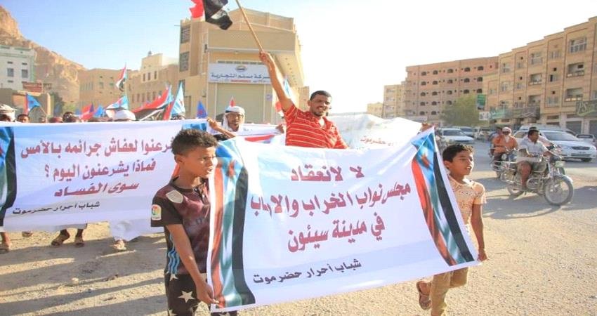 On Friday afternoon, the city of Mukalla in Hadramout witnessed an angry protest demonstration, rejecting the presence of the Presidency of the Yemeni parliament in the governorate, and the attempt to convene it in Seiyun.