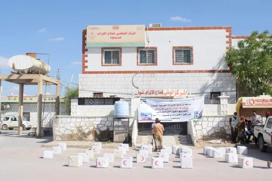Majid bin Saree, field director of the Emirates Red Crescent team in Shabwa, said that the authority is keen to meet the needs of patients and workers in oncology centers and dialysis centers in the province, with humanitarian food aid.