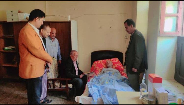 The head of the Southern Journalists and Media Members Syndicate, Aidroos Bahashwan, on Thursday afternoon visited the national activist and distinguished journalist Farid Abdo Sohbi, who is lying sick in his home in Crater in the capital, Aden.
