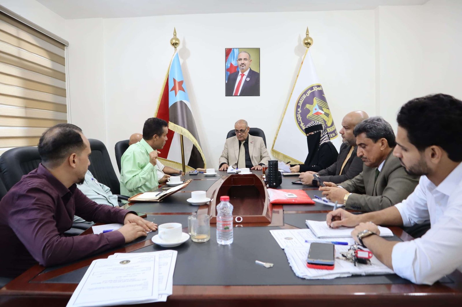The meeting focused on attempts to exploit political influence to promote dubious projects and ill agendas targeting the South, particularly those that contradict the aspirations and demands of the people of Hadhramaut.