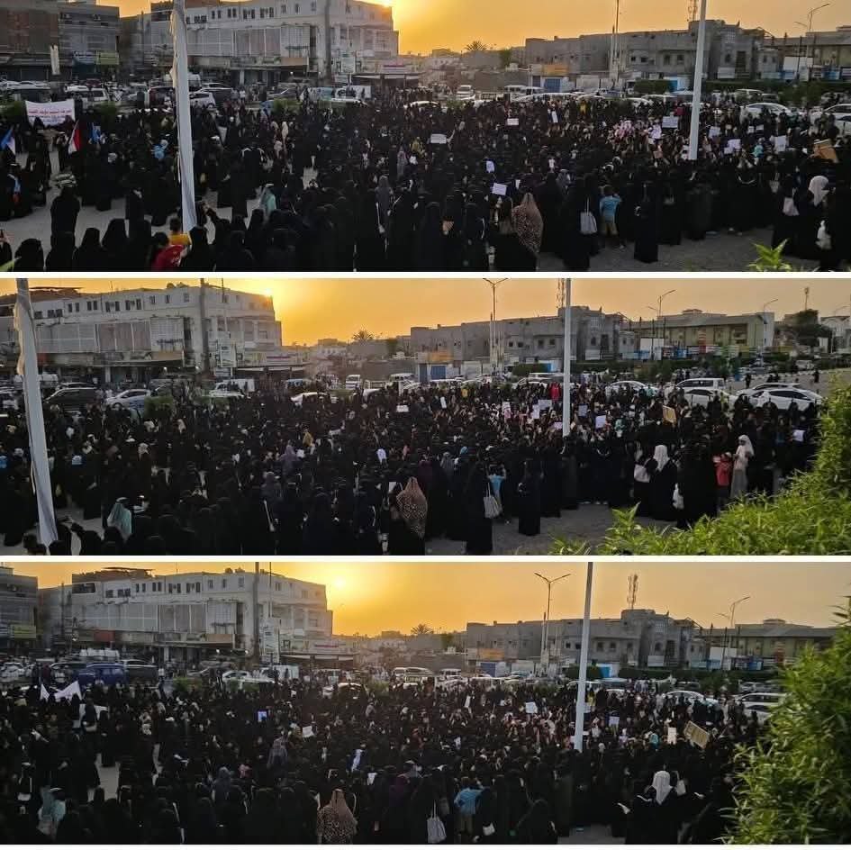 A massive women’s demonstration took place in Al-Arood Square in Khormaksar district of Aden the capital on Saturday afternoonWomen expressed their anger over the deteriorating living conditions and the ongoing collapse of basic services.