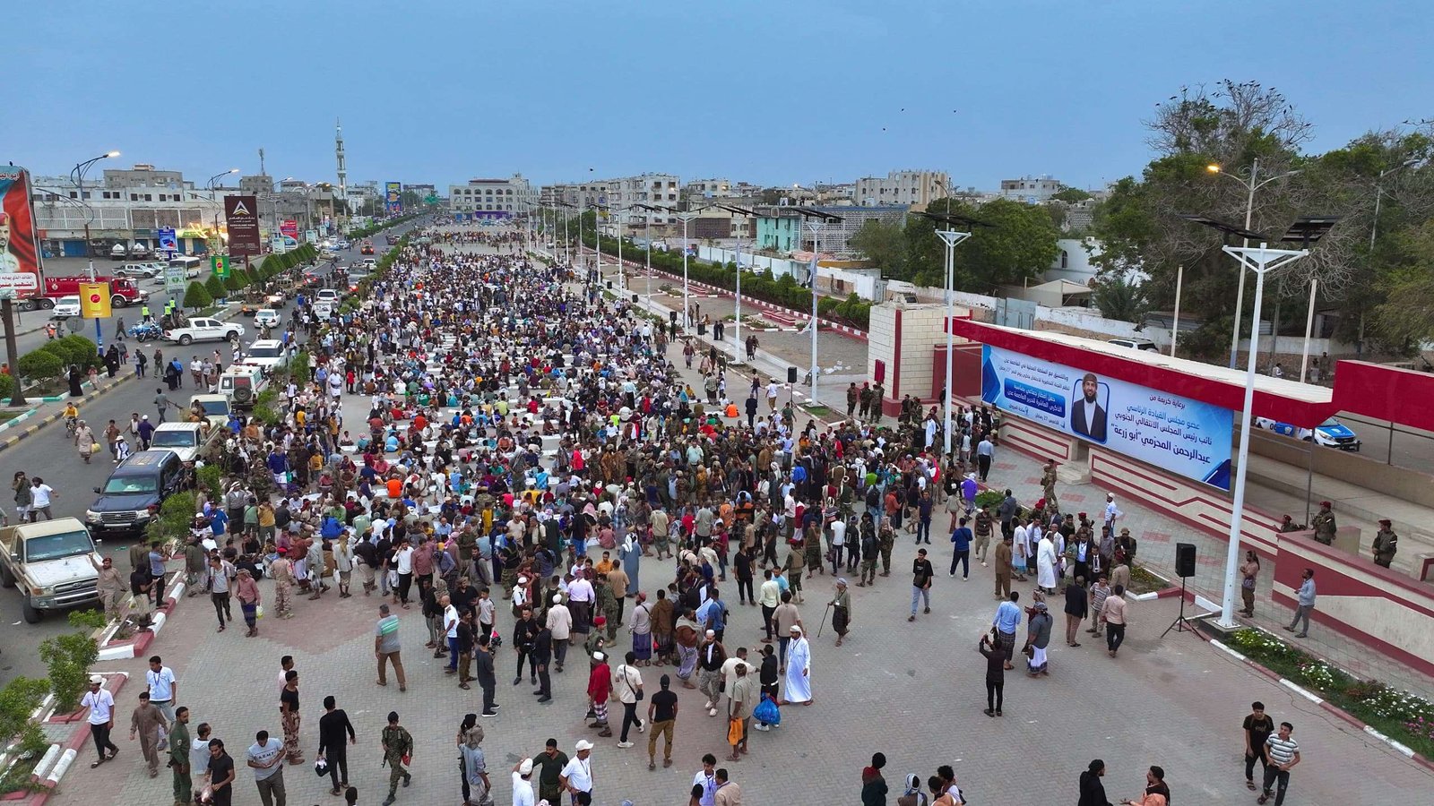 The celebration was attended by leaders from the Transitional Council, many leaders and heroes of the Southern Resistance, official, political, and dignitaries, senior security and military leaders, dignitaries and social figures, and a massive popular crowd that filled the square. This event embodies the steadfastness of the people and their relentless will to resist submission, defeat, or surrender, as they defend their principles and ideals.