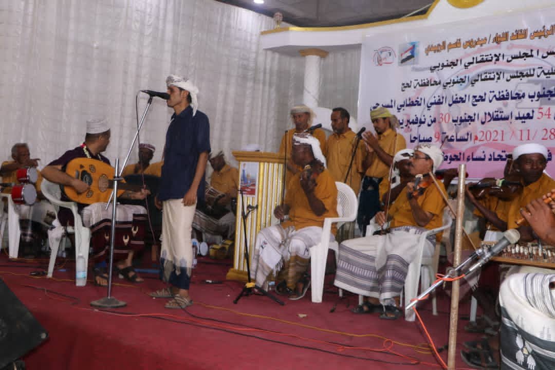 The Union of Artists of the South in Lahj governorate, on Sunday, organized an artistic and rhetorical concert on the occasion of the 54th anniversary of the National Independence Day of 30th November, under the generous patronage of President Aidarous Qassem Al-Zubaidi, President of the Southern Transitional Council.