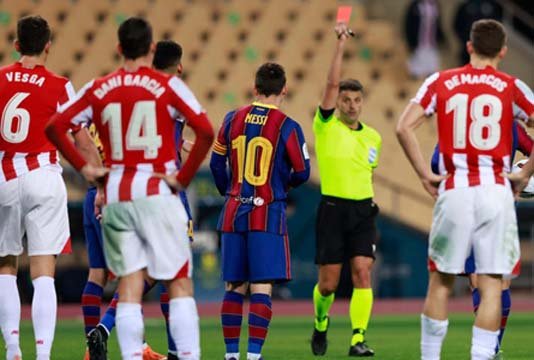 The referee of the match showed direct red card in the face of Lionel Messi, Barcelona’s captain, in the minute (120 + 1), while Athletic Bilbao players maintained their defensive resistance in the final minutes, before the referee blew the final whistle to announce the Basque team’s crowning the absentee title since 2015.