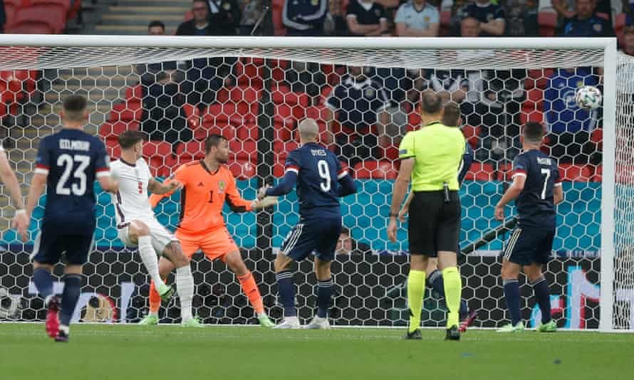 As Scotland settled and improved, England were grateful to Jordan Pickford’s superb save from Stephen O’Donnell and a goal-line clearance from Reece James to divert Lyndon Dykes’ goal-bound shot after the break.