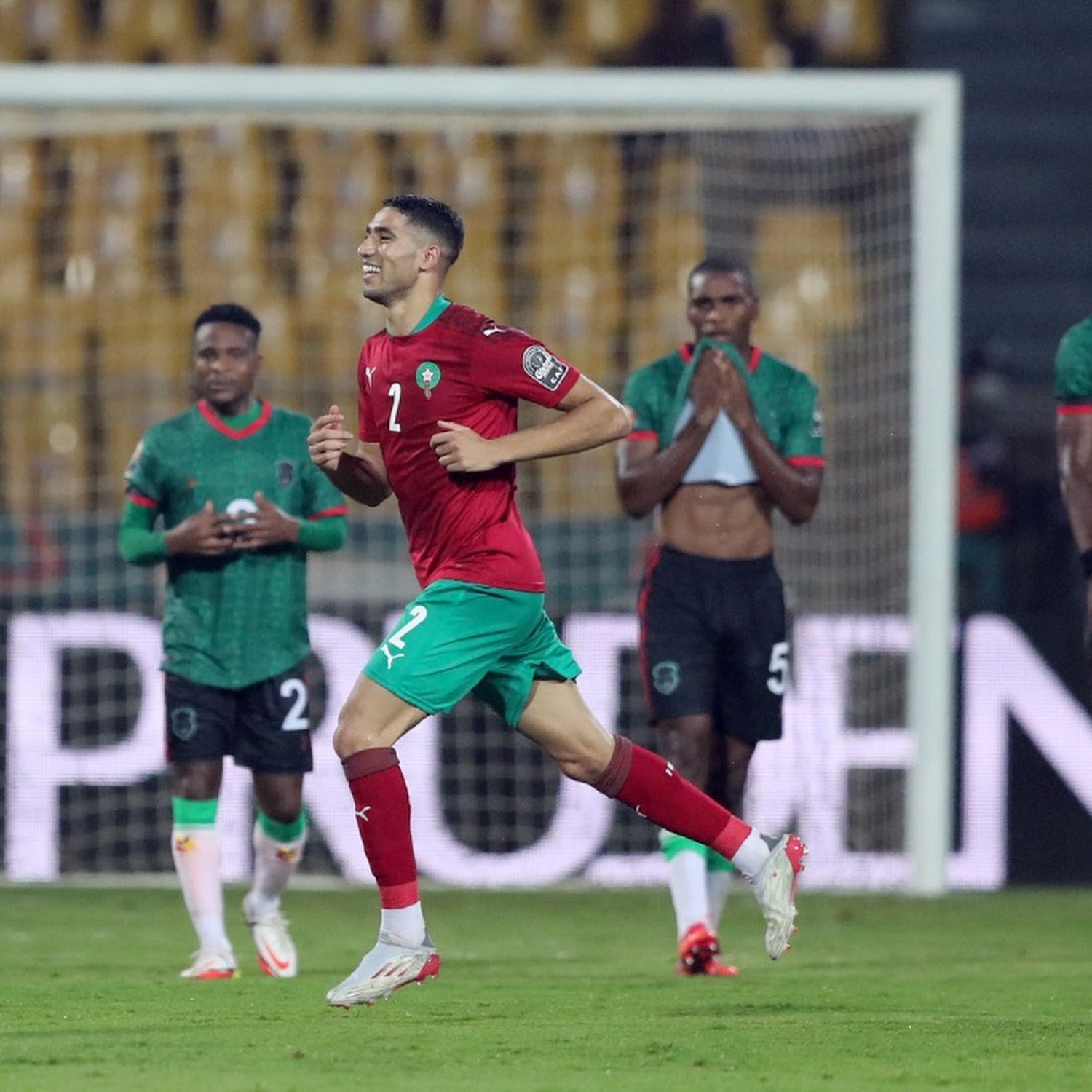 Achraf Hakimi scored a brilliant free kick to send Morocco through to the quarter-finals of the Africa Cup of Nations with a win over Malawi.