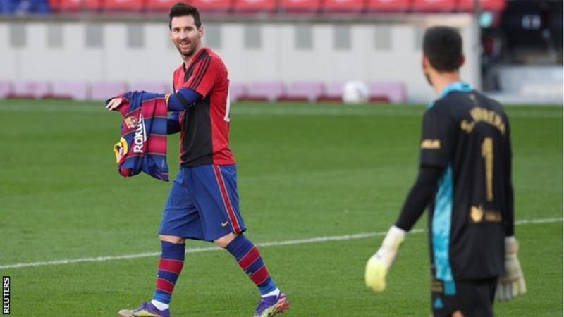 Lionel Messi paid tribute to the late Diego Maradona after scoring in Barcelona’s 4-0 La Liga win over Osasuna