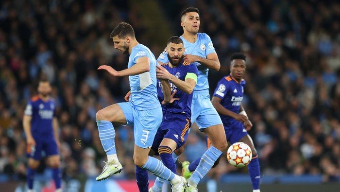 City had chances to go even further in front, but Real striker Karim Benzema dragged the Spanish giants back into the contest with a beautiful cushion finish before half-time.